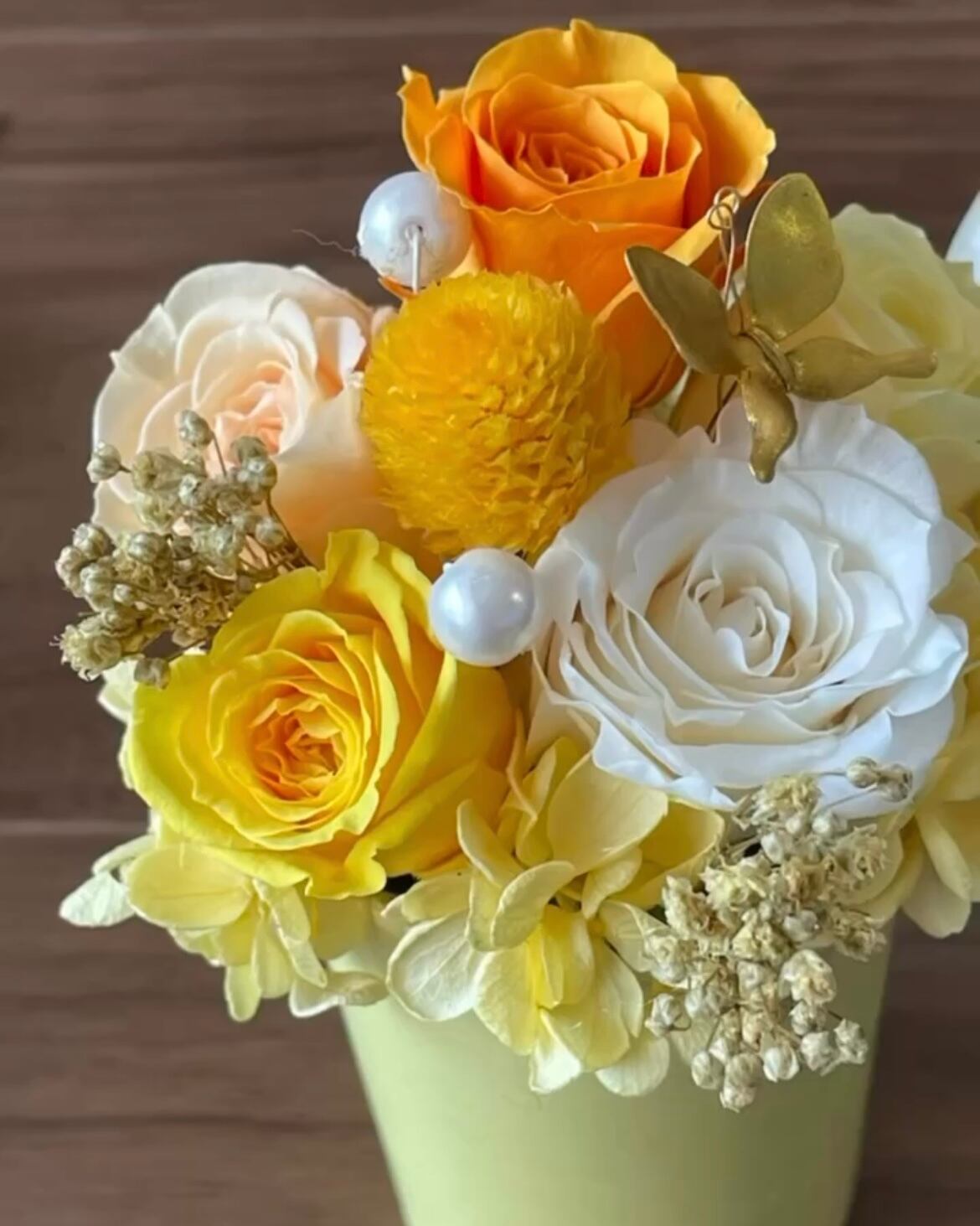 花 薔薇 ローズ フラワーアレンジメント プリザーブドフラワーアレンジメント 黄 オレンジ ゴールド 金運アップ プレゼント ギフト 贈り物 春 夏 秋 冬 リビング 玄関 ディスプレイ 贈呈品 送別会 退職祝い 新築祝い 新居祝い バースデー 誕生日 開店祝い 開業祝い 開院祝い 周年記念 就任祝い お礼 パーティ 結婚祝い 結婚記念日 出産祝い 引っ越し祝い 長寿 還暦 古希 喜寿 傘寿 米寿 卒寿 白寿 紀寿 退職 卒業 入学 卒園 発表会 成人式 クリスマス 母の日 父の日 敬老の日 バレンタイン ホワイトデー 記念日 送別 友達 同僚 上司 先生 お母さん お父さん おばあちゃん おじいちゃん 孫 インスタ映え 映え おしゃれ かわいい 大人かわいい キレイ きらきら 感動 サプライズ 思い出 20代 30代 40代 50代 60代 70代 80代 90代 風水